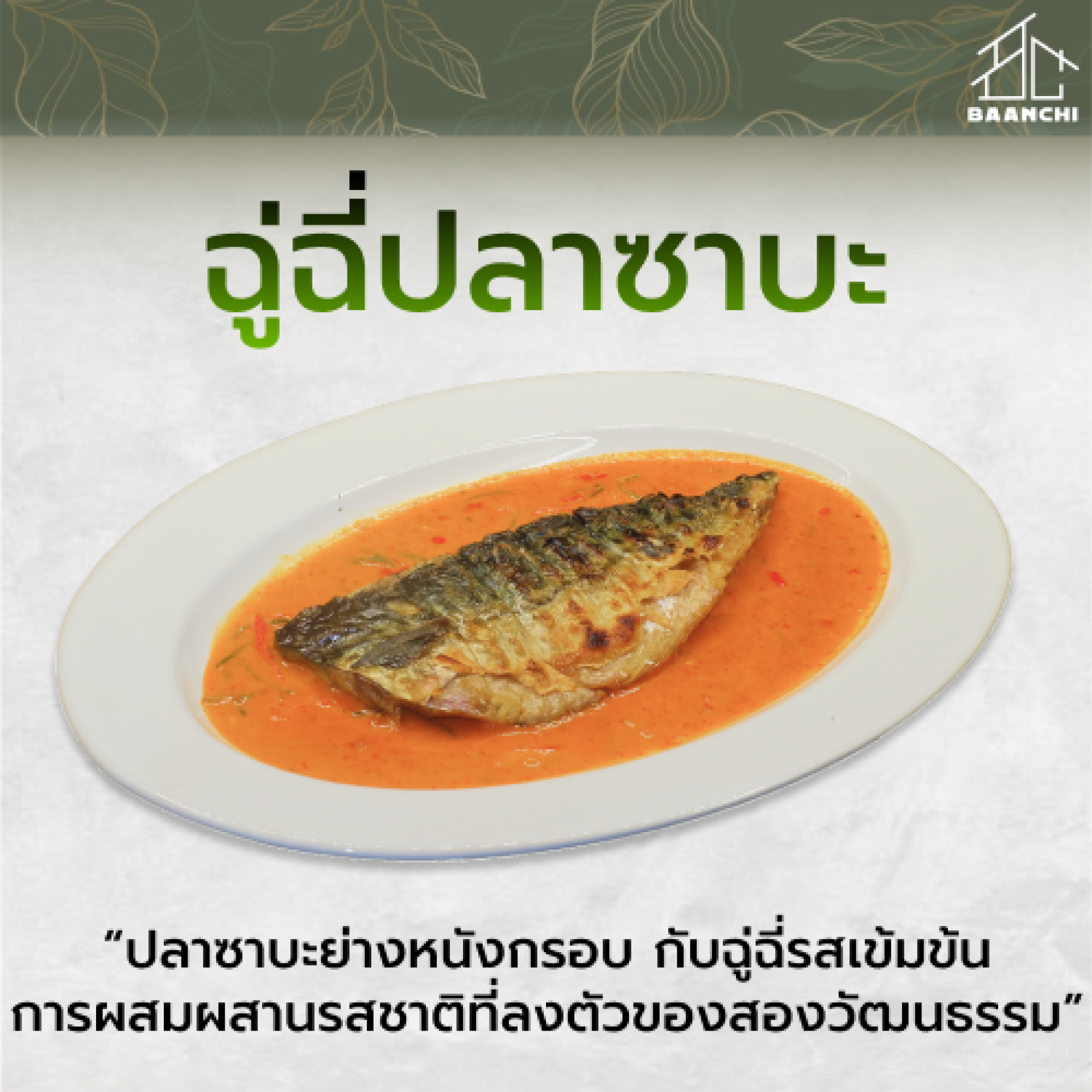 หนึ่งในเมนูขายดีของร้าน บ้านชิ ที่ไม่เพียงสะท้อนเอกลักษณ์ของอาหารไทย แต่ยังนำเสนอความสร้างสรรค์ในแบบ ไทยฟิวชัน ได้อย่างน่าสนใจ คือจานเด็ดที่ชื่อว่า ฉู่ฉี่ปลาซาบะ